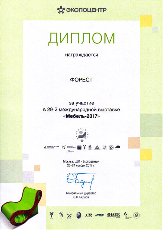 Диплом за участие в 29-й международной выставке «МЕБЕЛЬ-2017»